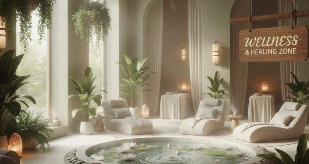 One of the most anticipated Dhanveda Farmlands amenities is the upcoming wellness hub. With Ayurveda rooms, meditation decks, and herbal gardens, this zone will become a major highlight for visitors looking for peaceful eco-stay farmlands for weekend getaways.
