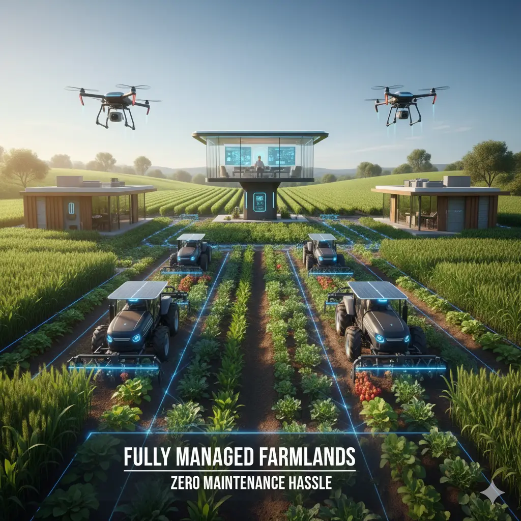 A managed farmland is professionally maintained by experts who handle cultivation, irrigation, and yield sharing — so you earn returns without managing the land yourself