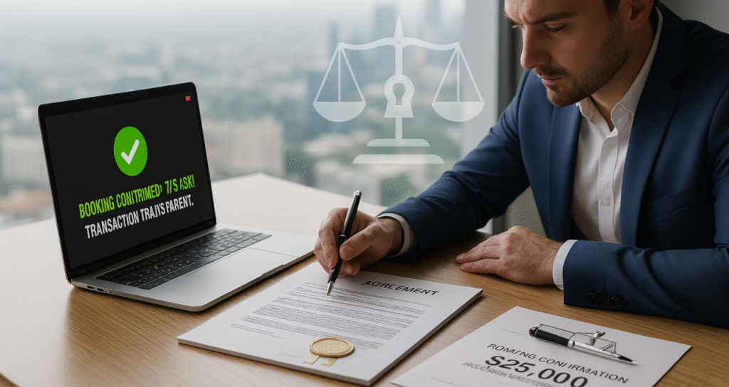After reviewing all documents and once you proceed with the 30% payment, the formal legal agreement is signed.