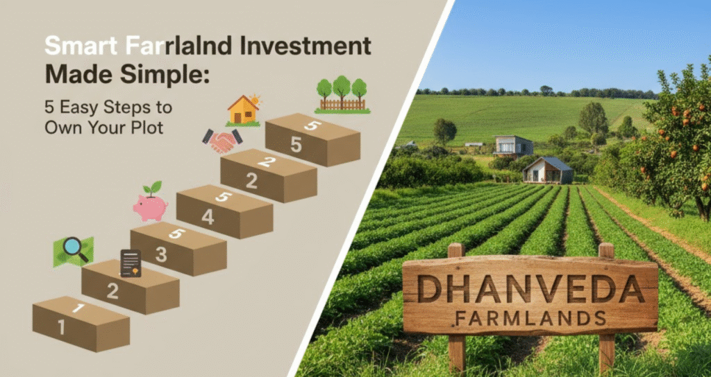 Dhanveda Farmlands offers a clear, legally transparent, and future-ready way to own farmland near Bangalore. With a guided 5-step process, premium upcoming amenities, and a trusted development approach, your Farmland Investment becomes safe, simple, and truly rewarding—both today and in the years to come.