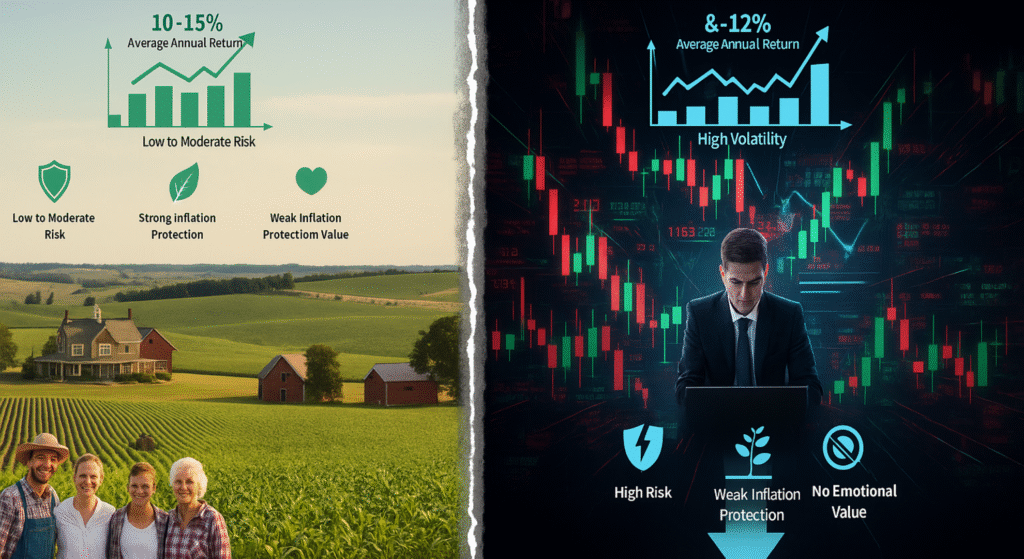 For risk-tolerant investors, stocks can work well. But for those who want peace of mind and tangible growth, farmland provides a steadier alternative.